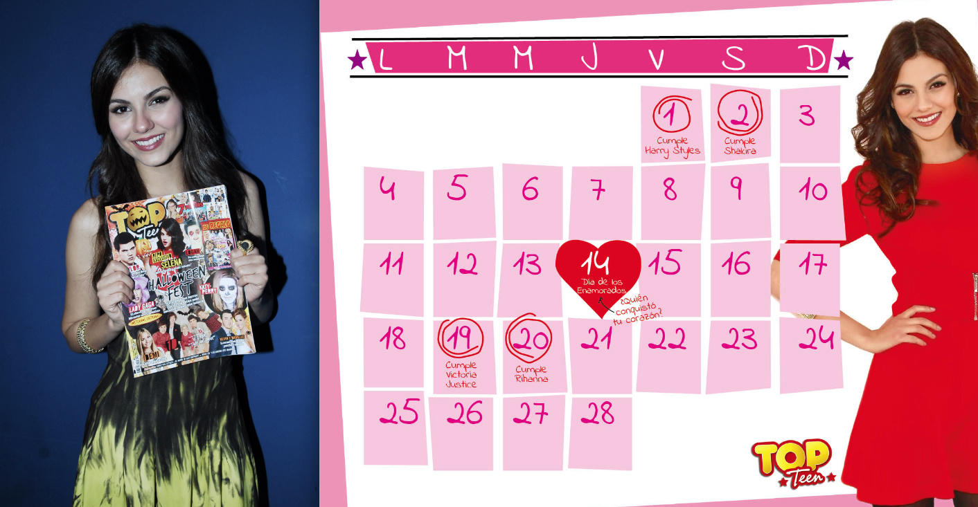victoria justice en el calendario de la revista top ten (de argentina)